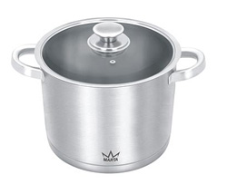 Чтобы в приготовленной пище сохранилось больше витаминов и минералов, при варке продуктов нужно использовать небольшой объём жидкости, а жарить почти без жира. Такая здоровая пища сохраняет естественный аромат, возбуждающий аппетит, аппетитна, помогает сохранить здоровье, отлично подходит для диетического меню. Готовить пищу, полезную для здоровья, поможет специальная посуда - марта Трейд MT-2937 металлическая кастрюлька 5,0л. Она имеет объём 5,0 литра и диаметр двадцатьчетыре см, отличает современный привлекательный дизайн. Марта Трейд MT-2937 металлическая кастрюлька 5,0л подходит для самых разных плит: с галогенными конфорками и стеклокерамической поверхностью, для газовых и электроплит. Ручки не подвергаются нагреву во время приготовления пищи, однако пища в этой кастрюльке долго остаётся горячей.